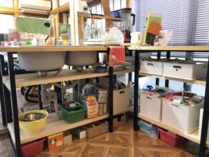 コンロとの間が広いので、ゴミ箱や掃除機の置き場になりました。