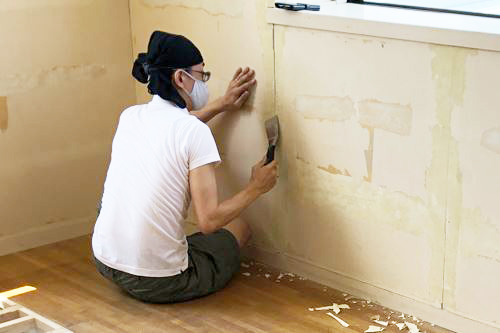 DIYでお部屋の壁を塗るときの準備、下地処理から塗るまでの工程を紹介し、