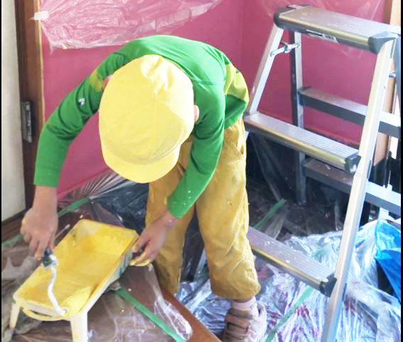 休日のDIY中に、息子の友達も塗装体験にきました。