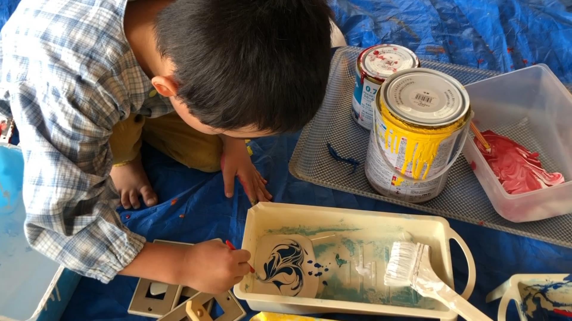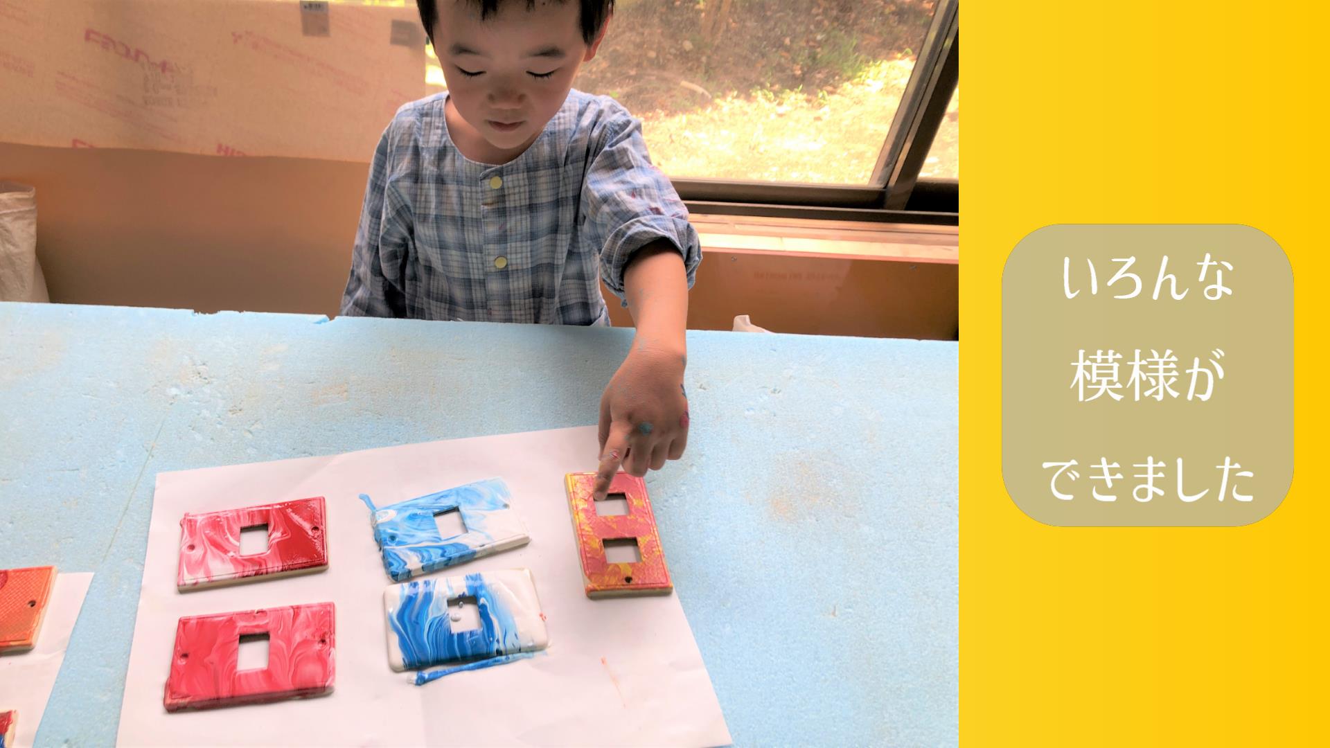 私は、子どもと二人で、我が家のスイッチカバーを主にマーブリングでリメイクしました(全部で10個以上ありました)。