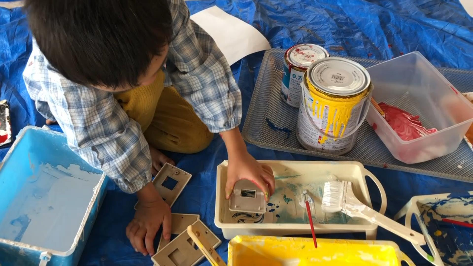 わが家の場合は、壁や他の部分を塗った水性塗料の”あまり”を使いました。