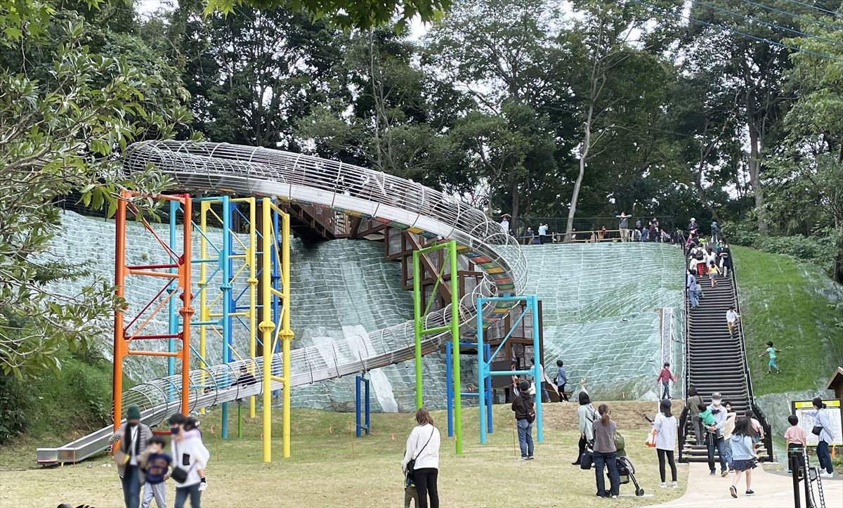 こちらは、2022年10月に新しく仲間入りした「スパイラルフォレスト」というローラースライダーで、地上10メートルの高さから一気に降りてきます。