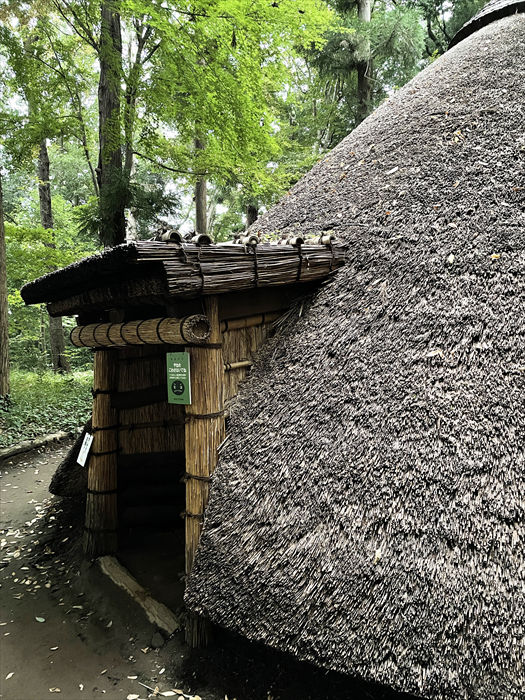 屋根は茅葺屋根ですが、松戸市立博物館制作の「よくわかる!竪穴住居解説動画」によると、当時使われたであろう材料を推測して用いたものということです。