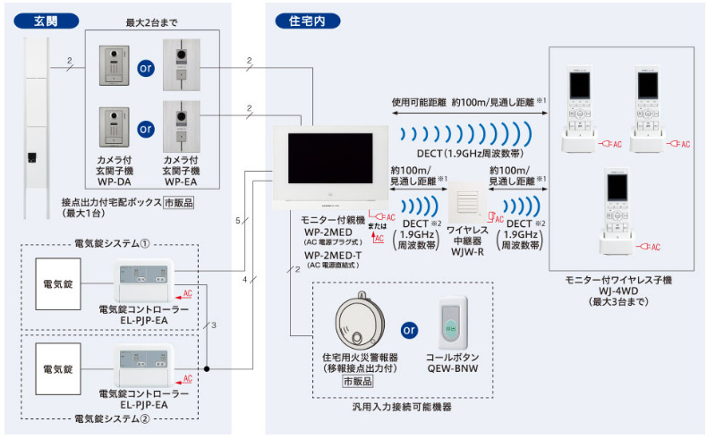 の組み合わせとなり、カメラ玄関子機のみ、異なります。